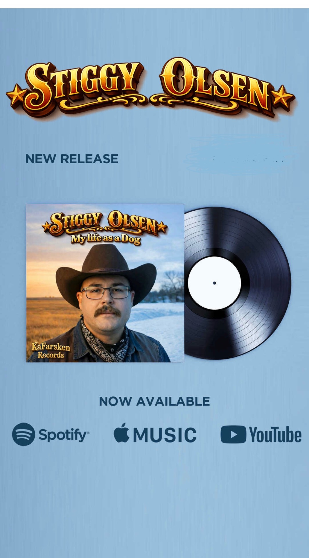 Velkommen til Stiggy Olsens nettside. Her får du tilgang til å kjøpe countryalbumene mine på både CD og LP (vinyl). Forhåndsbestillinger er tilgjengelige fra 17. februar 2026 og utgivelse er 1. mai 2026.